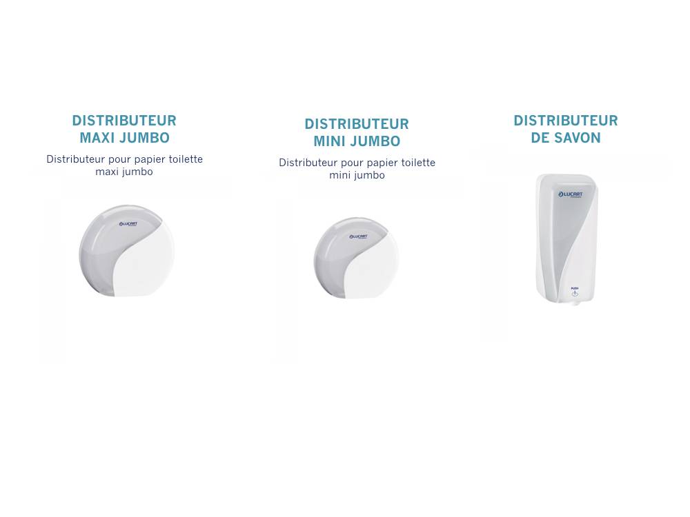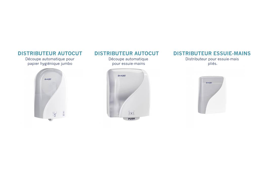 BME sarl présente sa gamme de distributeurs de papier toilette mini jumbo, maxi jumbo, feuille à feuille, d'essuie-main, de bobines 200fts et 450fts ainsi que les distributeurs autocut.